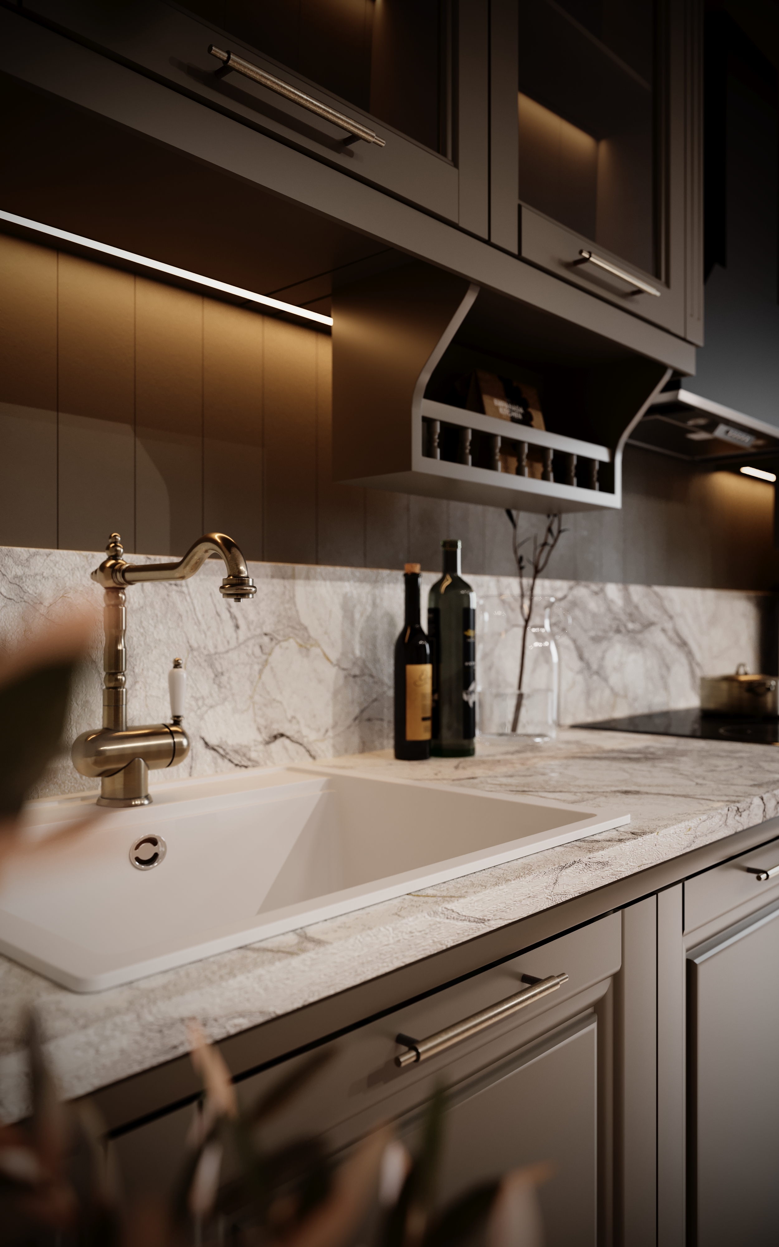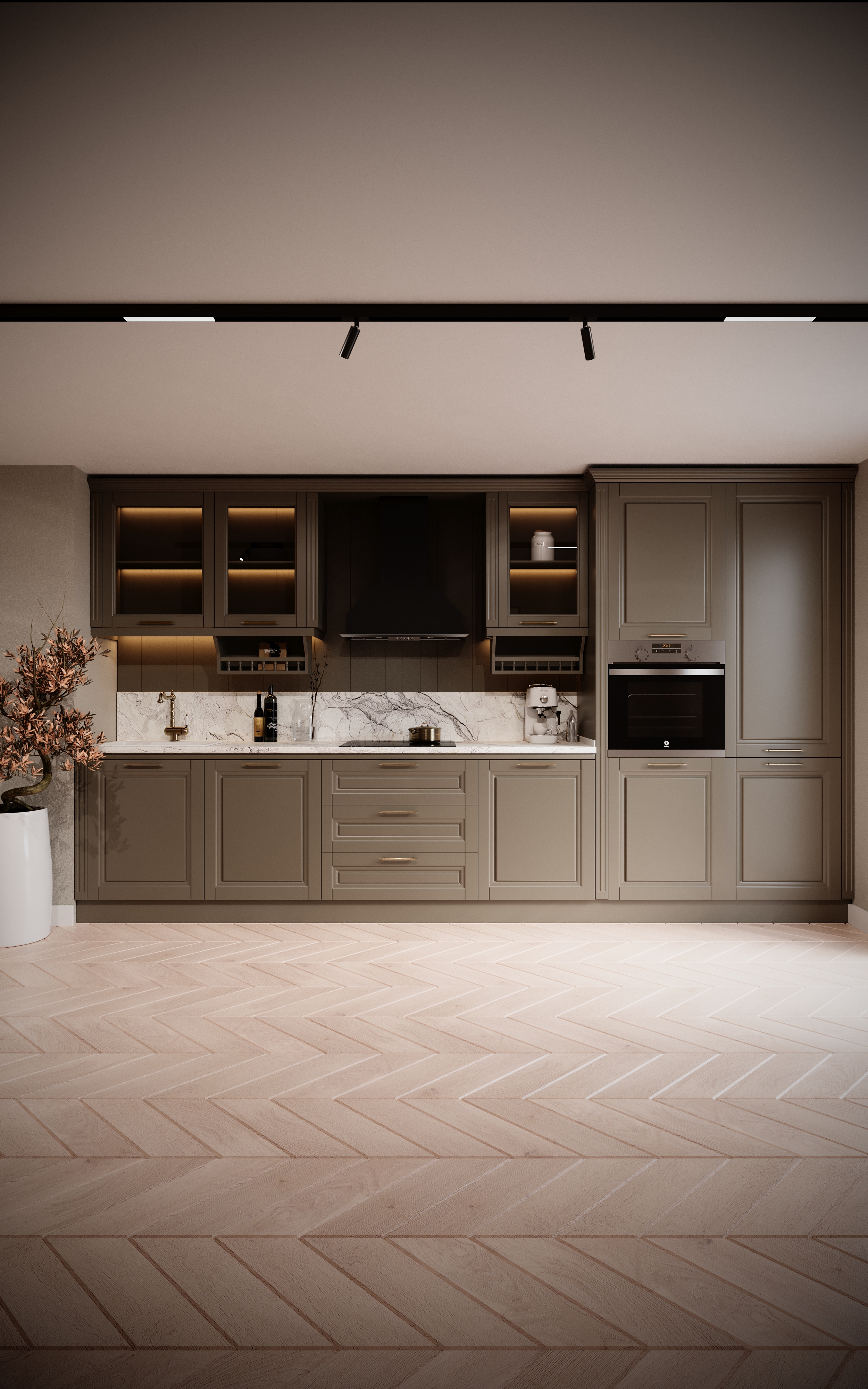 Bucătăria Baron by Terramob face parte din trio-ul Classic by Terramob și se distinge prin fronturile cu ramă profilată, ce îmbină modenaturi clasice rotunjite cu o porțiune centrală dreptunghiulară reliefată. Această construcție conferă profunzime și caracter frontului, păstrând proporțiile tradiționale specifice bucătăriilor clasice.