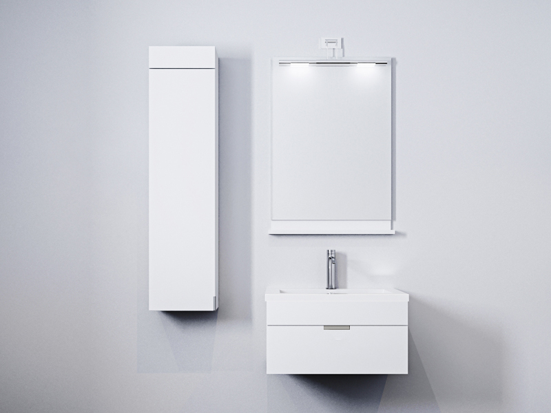 Colecția este disponibilă în două nuanțe. Mobilierul este compus din bază, oglindă și stender prosoape.