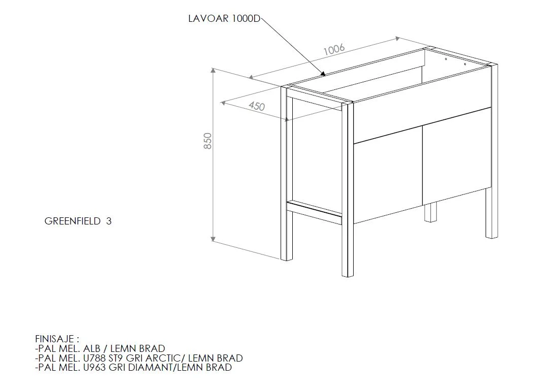 MF GREEN 3 BAZA 1006X455X850 PAL MEL. ALB/LEMN BRAD
