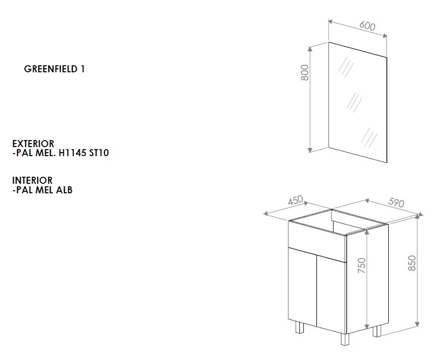 MF GREEN 3 BAZA 590X450X850 PAL MEL. ALB/LEMN BRAD