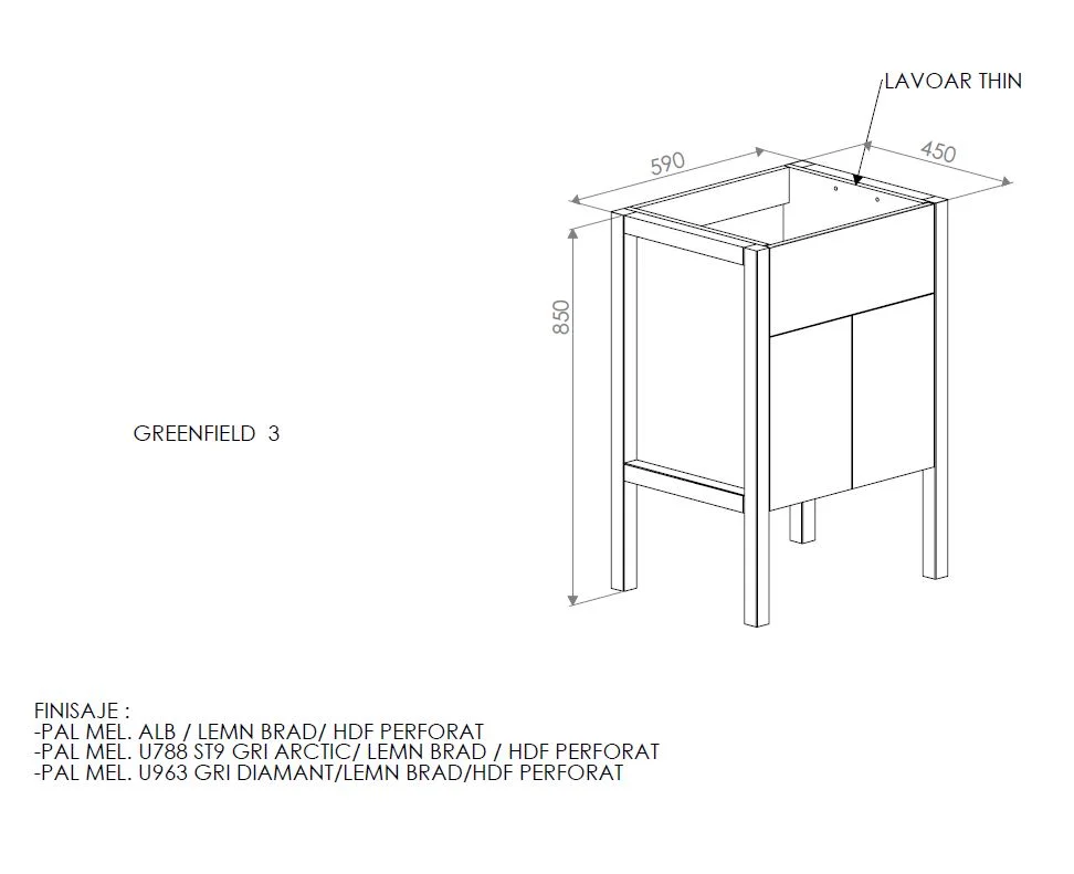 MF GREEN 3 BAZA 590X450X850 PAL MEL. U 963 ST9 GRI DIAMANT/LEMN BRAD