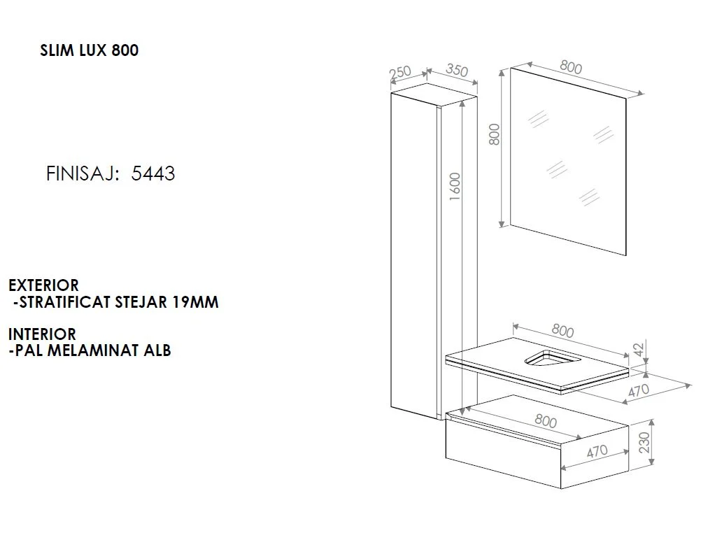 MF SLIM LUX BAZA 1S 800X470X230 MDF MAT ALB RAL 9003