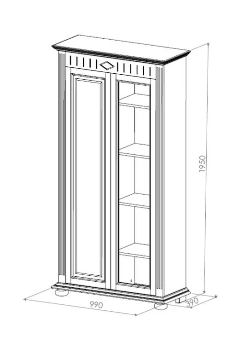Vitrina construita integral din lemn masiv de brad , ofera un spatiu de depozitare practic cu rafturi ce pot fii ajustate pe inaltime Dimensiunile totale : latime 99 cm, adancime 39 cm, inaltime 195 cm. Nu necesita asamblare. Face parte din Colectia Noblesse